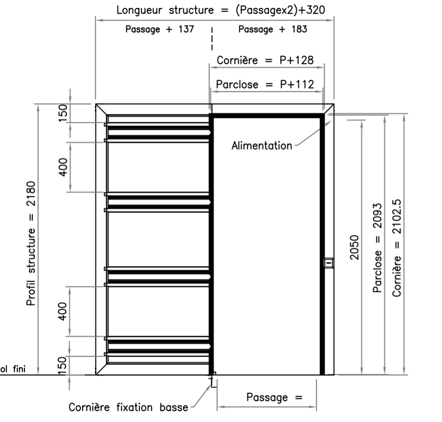 Scrigno Chassis Gold Base Scrigno Simple Cloison Finie 100 Mm Vide Interne 54 Mm Plaque De Platre 60x203 Cm Porte Ep 40 Mm Point P