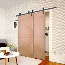 Us 101 0 5ft 6ft 6 6ft 7 5ft 8ft American Style Interior Sliding Double Barn Door Hardware Bypass Wood Roller Closet Track Kit Set Barn Door Hardware Bypass B Porte Coulissante Accessoires Porte Coulissante Portes De Grange Interieur
