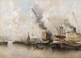 Jongere M De Drulman Marinus Johannes View Of Rotterdam Harbour 1stdibs Com Landscape Paintings Painting Ship Art