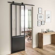 Porte Coulissante Atelier Vitree Chloe Noir H 204 X L 83 Cm Porte Coulissante Portes Coulissantes De Cuisine Porte Coulissante Atelier