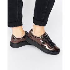 Puma Classic Platform Trainers In Shiny Bronze 105 Liked On Polyvore Featuring Shoes Sneakers Cop Platform Sneakers Metallic Platform Shoes Puma Classic