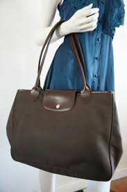 Grand Sac Longchamp Cabas Toile Et Cuir Marron Xl A4 Porte Epaule Bag Bags Longchamp Toile